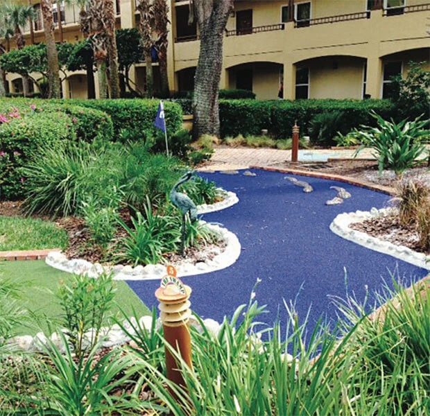 quality, in-house groundskeeping operation from scratch is expensive. Storing equipment, from rakes and shovels to mowers, trimmers and blowers requires a lot of space, and creating safe storage for combustibles is important. Professional landscaping companies invest in the equipment, employees, and storage neces- sary to manage resorts’ grounds.