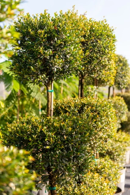 - Ligustrum - Often used as a shrub or hedge. Can grow 8-12 feet tall and considerably wider. Features curved multiple trunks and dark green canopy. Creates an interesting architectural focus.